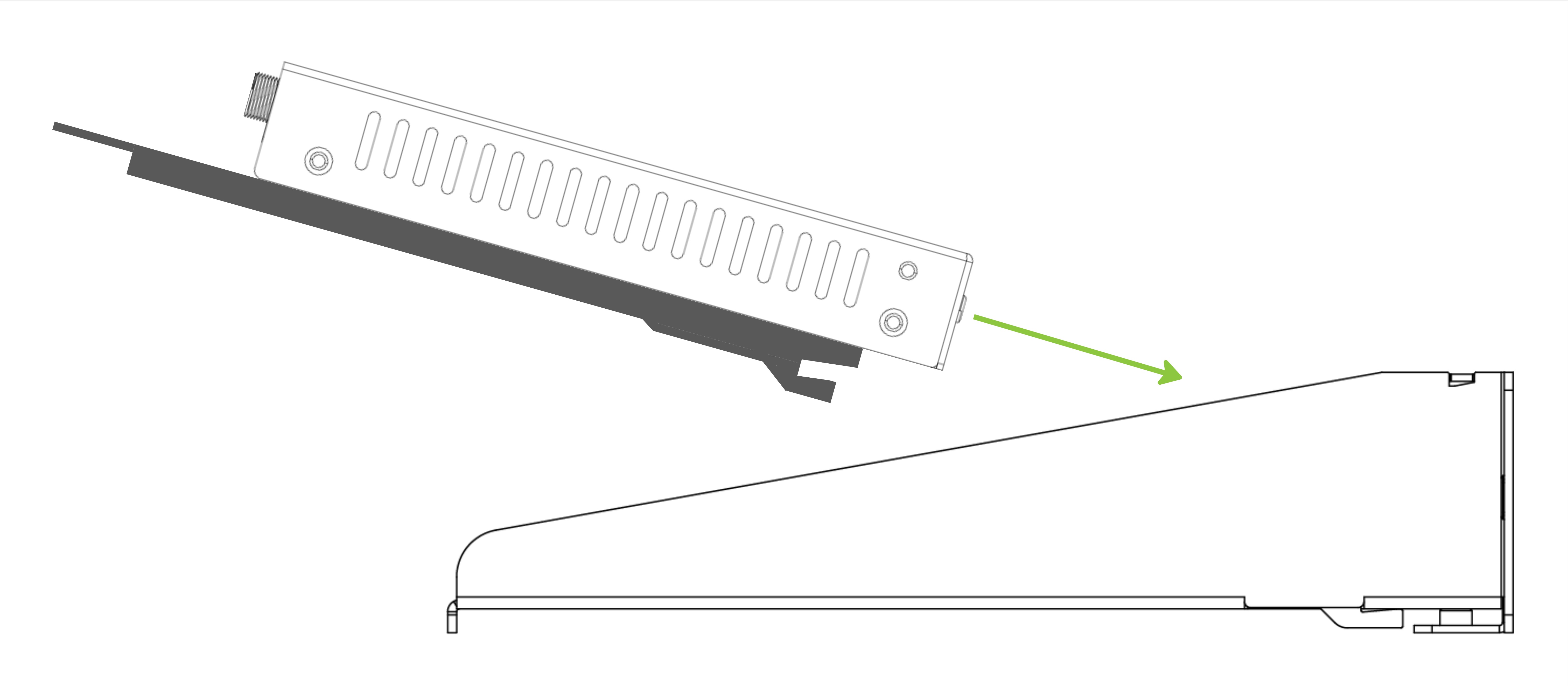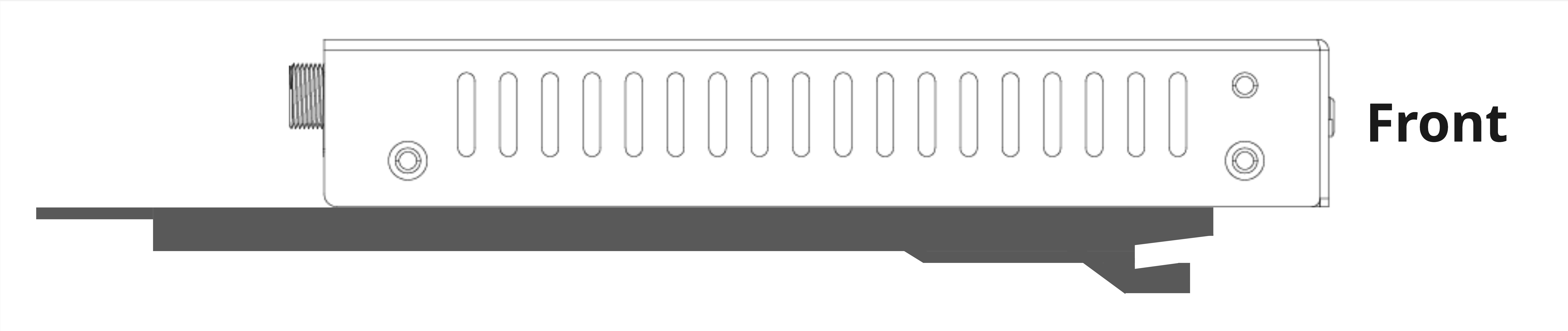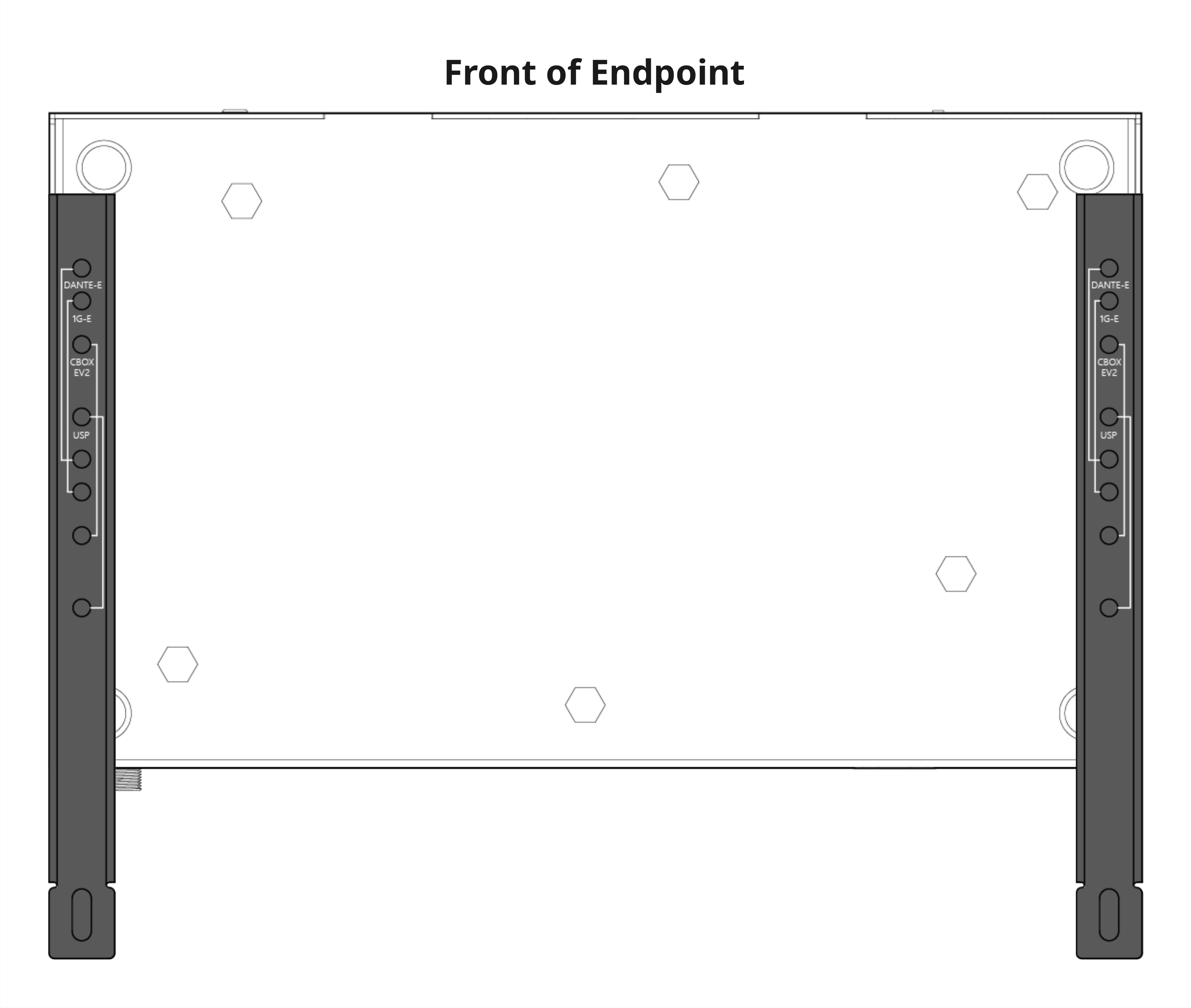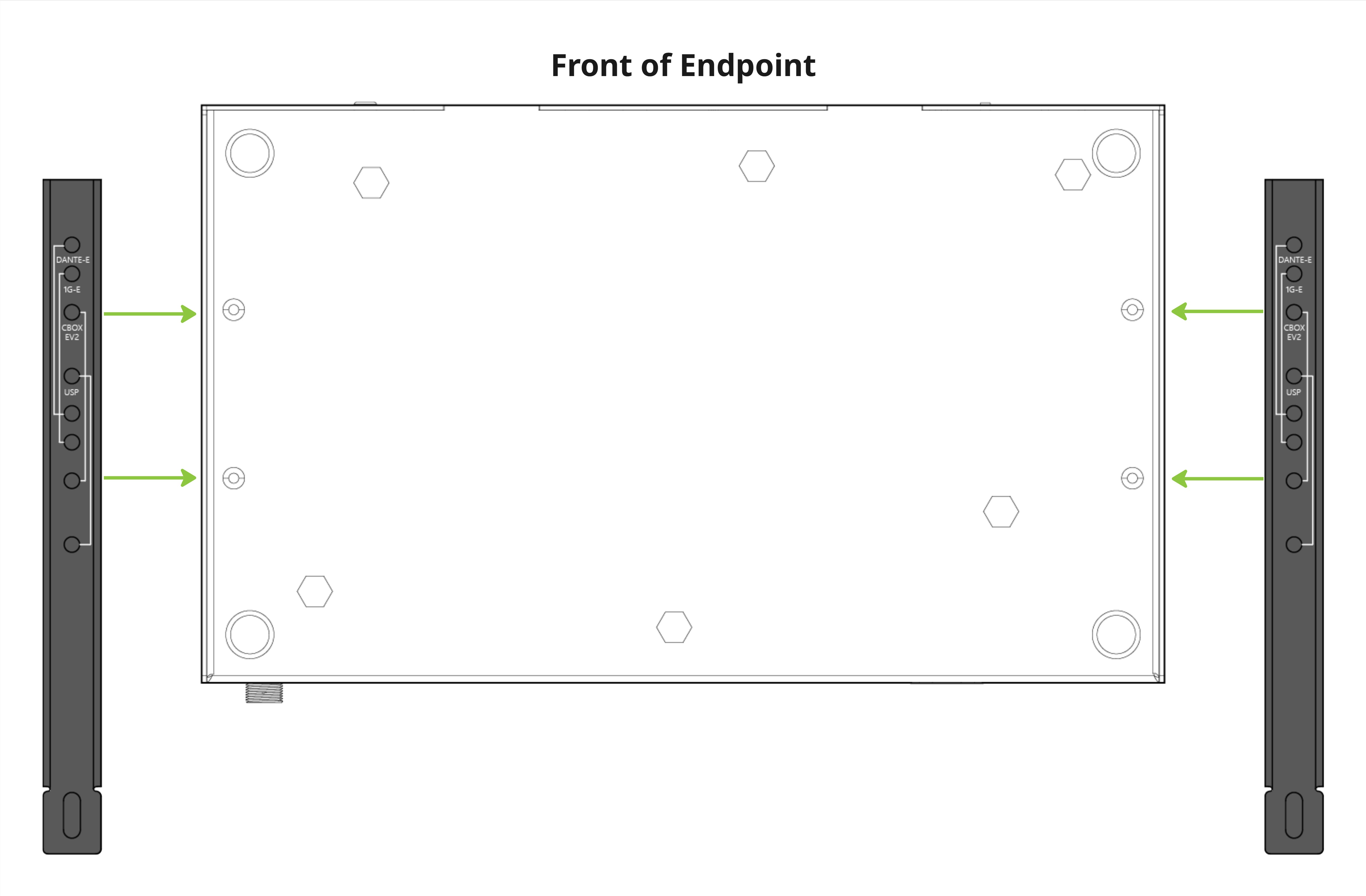 - Using the the included screws, securely attach the brackets to the endpoint. It is normal for the front of the endpoint to extend approximately 1" past the mounting bracket. This allows for it to sit flush against the front of the rack shelf.