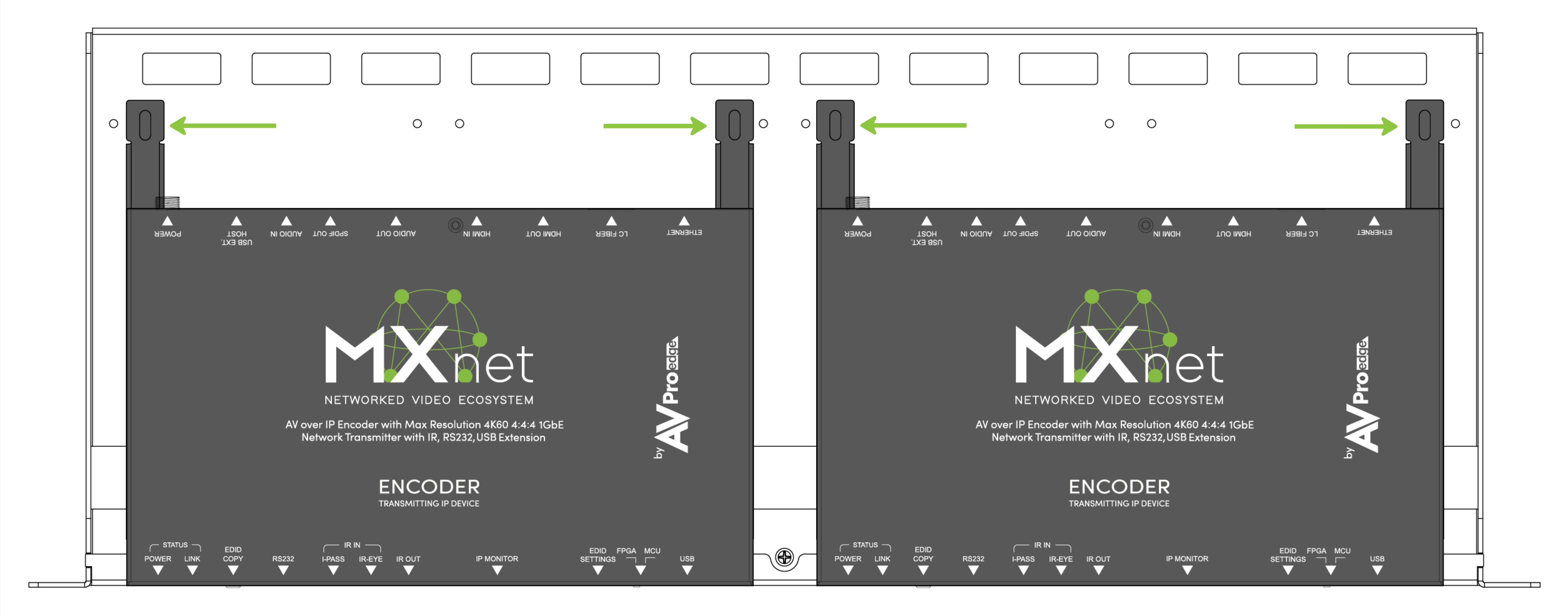 This mounting kit enables secure installation of up to two MXnet devices horizontally in a standard 19″ rack enclosure.