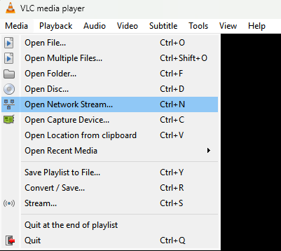 - From within VLC, open the Media menu and choose Open Network Stream