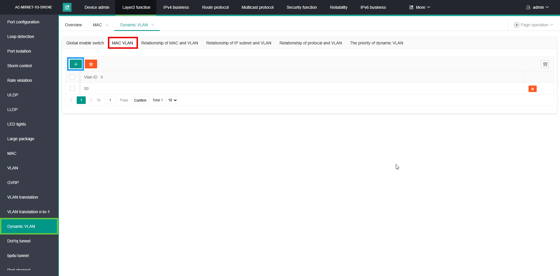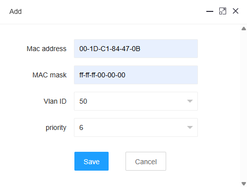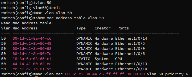 Example: mac-vlan vlan 50