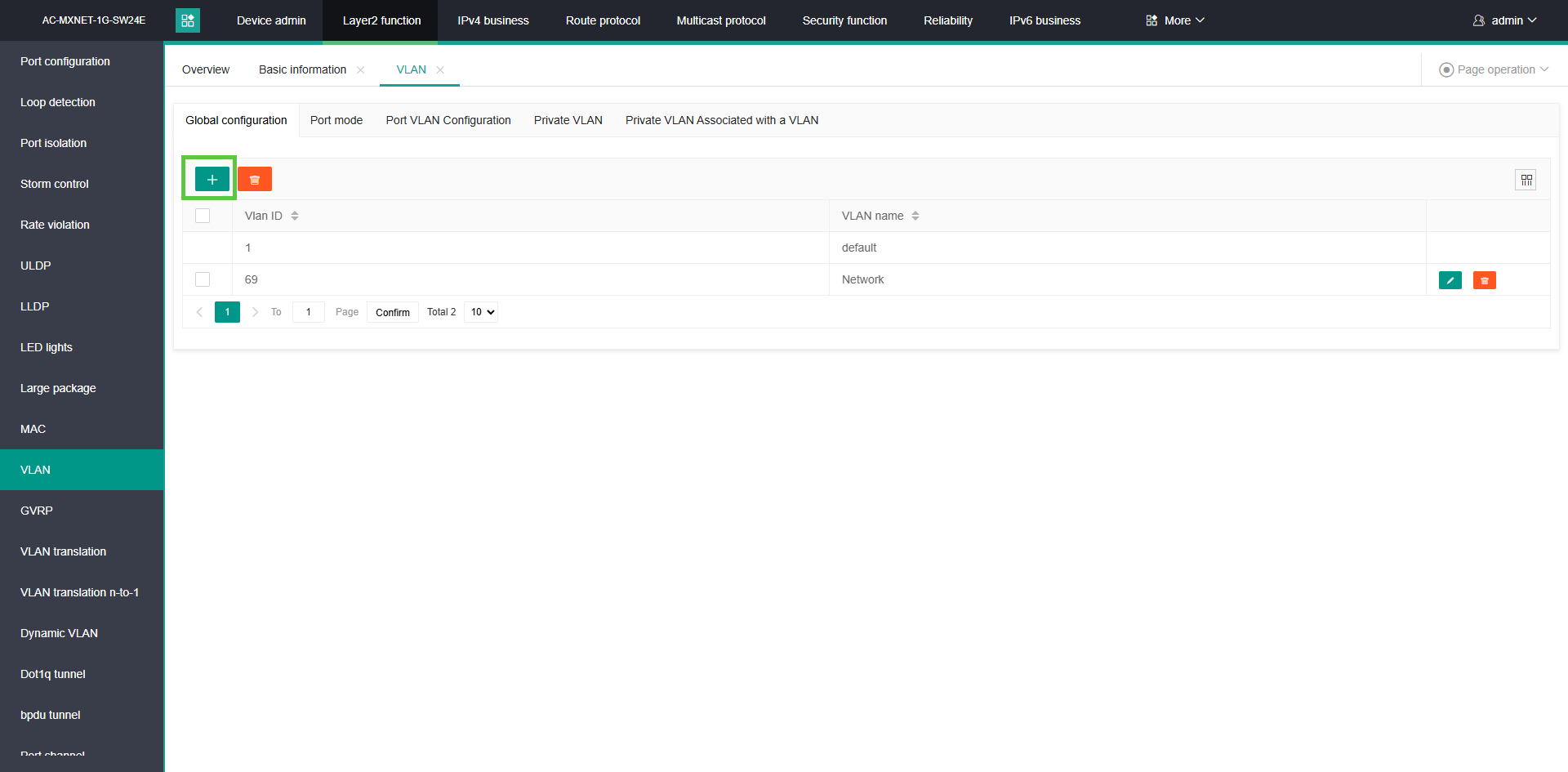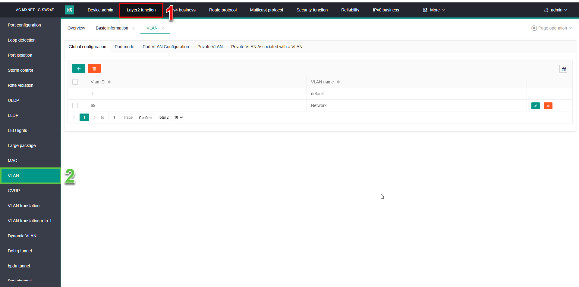 Step One: Access the CLI of the MXnet network switch, either via IP or via the Console port. Default credentials are admin/admin.