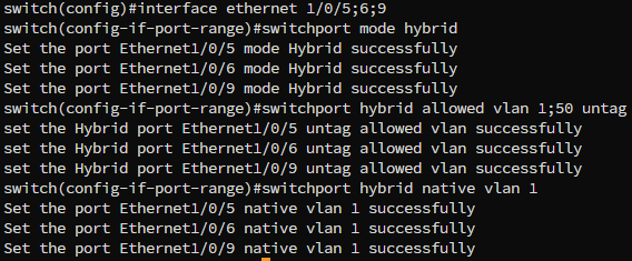 switchport hybrid allowed vlan 1;50 untag