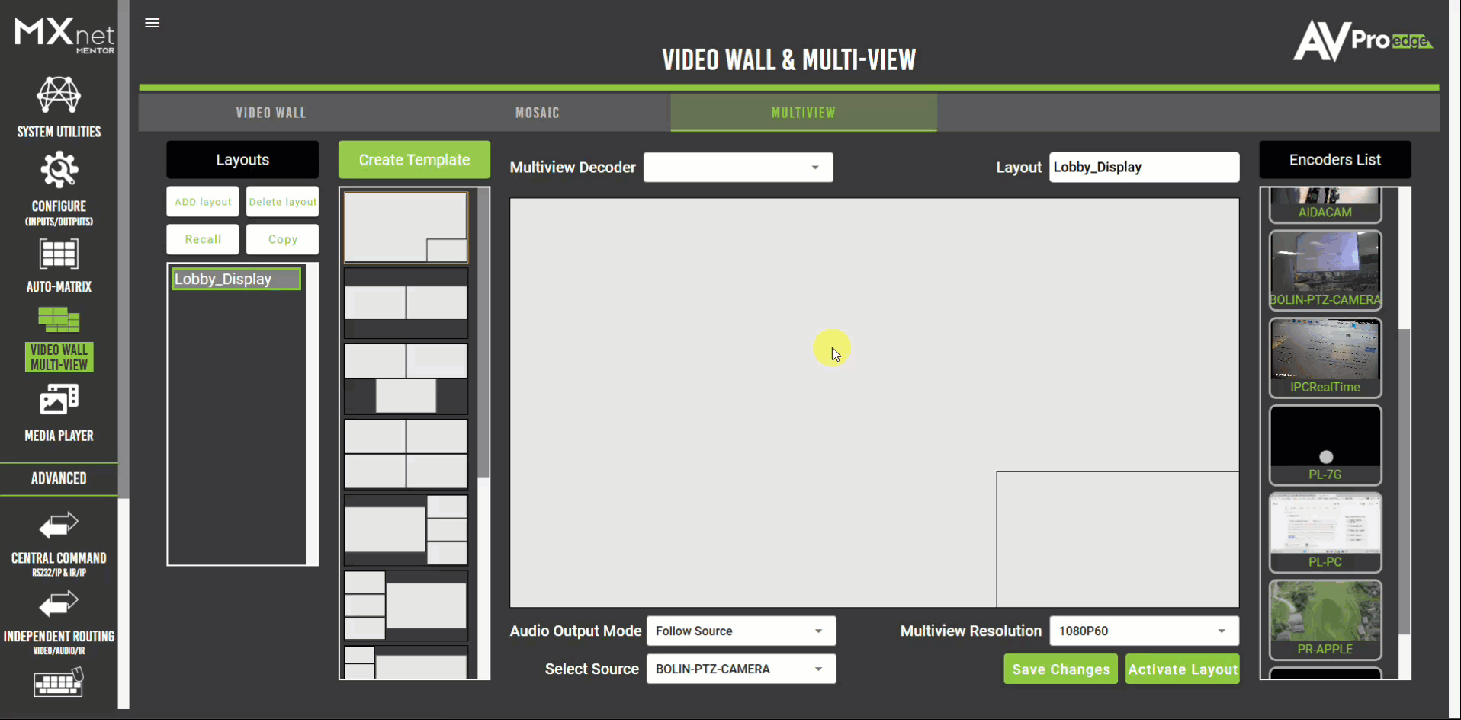 Once your layout is saved, click the Activate Layout button to generate and deploy the multiview to the selected decoder. The decoder will begin subscribing to the configured video sources and display them according to your layout template.