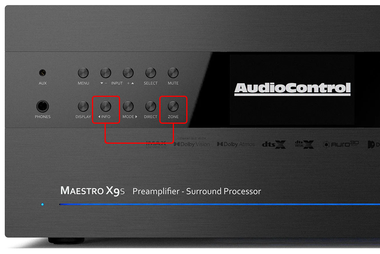 If you do not need to store a backup of your settings, press and hold the Info and Zone buttons on the front panel of your unit for 5 seconds.