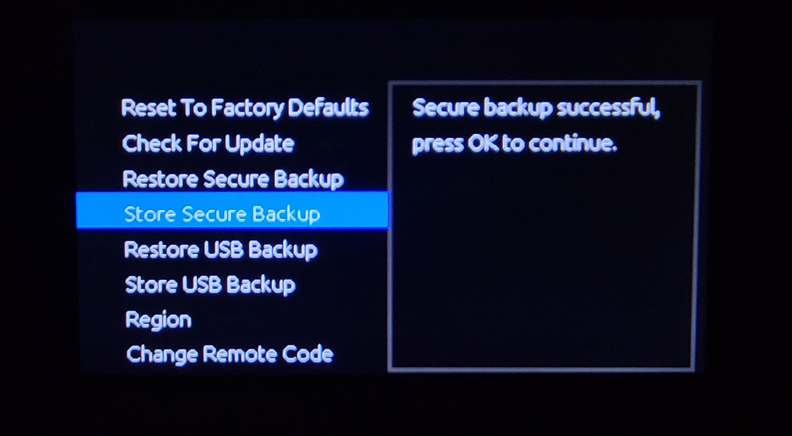 The default pin is 0000, press Select to continue, and a message will pop up indicating the backup was successful. Press select to exit.