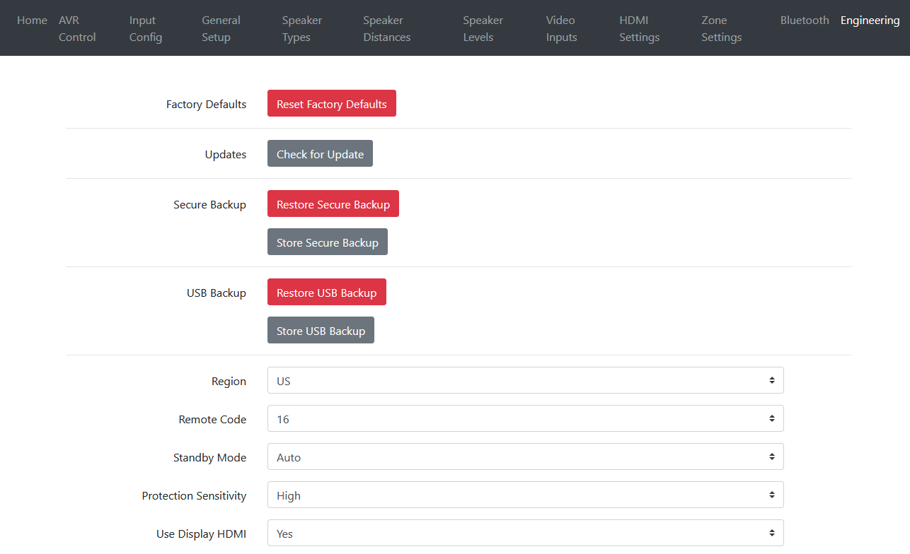 To revert back to your saved settings, press and hold the menu button to access the Engineering menu, then select Restore Secure Backup. The amp will go into standby, and will have all its previous settings when powered back on.
