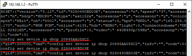 config set device ip dhcp <MAC Address or Custom Name of TX or RX>