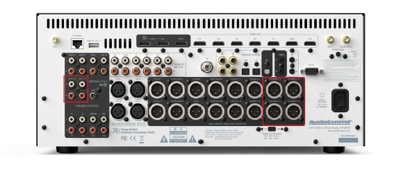 Run your analog interconnect cables from either the unbalanced RCA or balanced XLR outputs to your amplifiers (XLR or RCA on X7 / X9, unbalanced RCA only on XR6 / XR8).