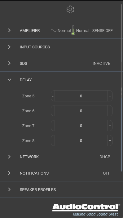 The AudioControl Director series amplifiers allow you to group 2 or more zones together so they act as one. This is useful if you have multiple sets of speakers for a single area, and you want them to all share the same input, volume level, and power ...