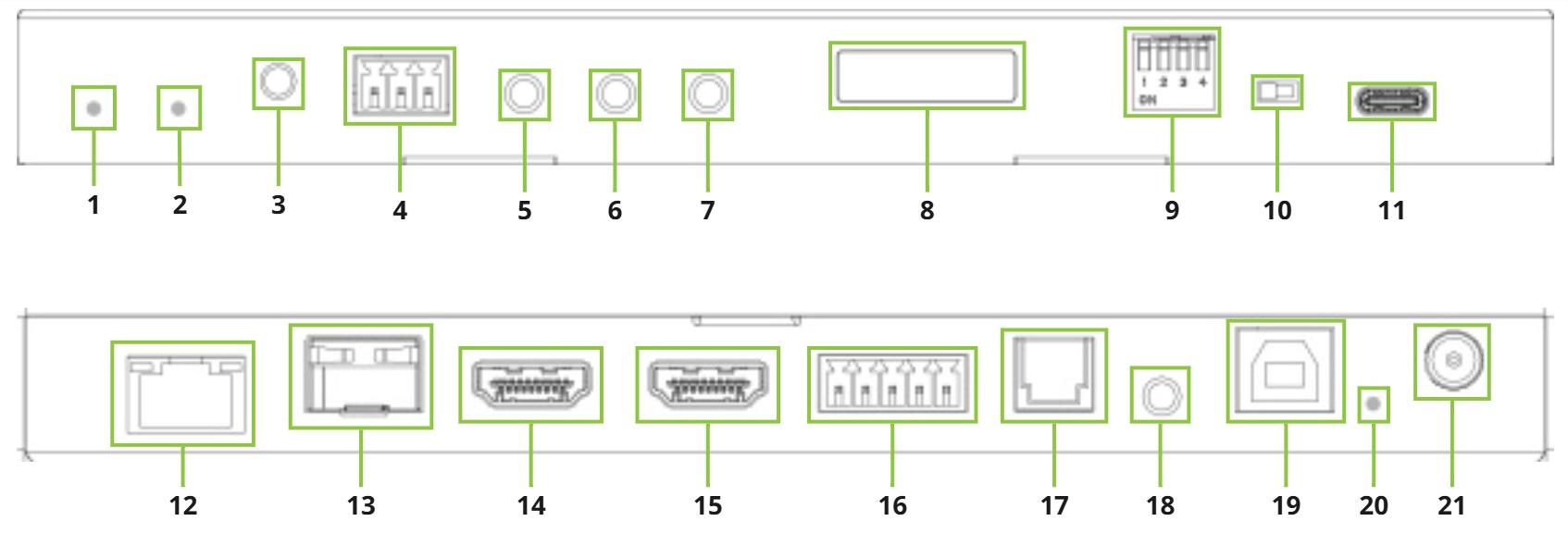 Decoders are devices that connect to a sink device such as a television or projector and receive (or decode) signals generated by MXnet encoders.