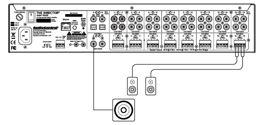 To add a powered subwoofer or a secondary subwoofer amp with your AudioControl Director amplifier, you can use the amp's Digital outputs to send signal to the subwoofer.
